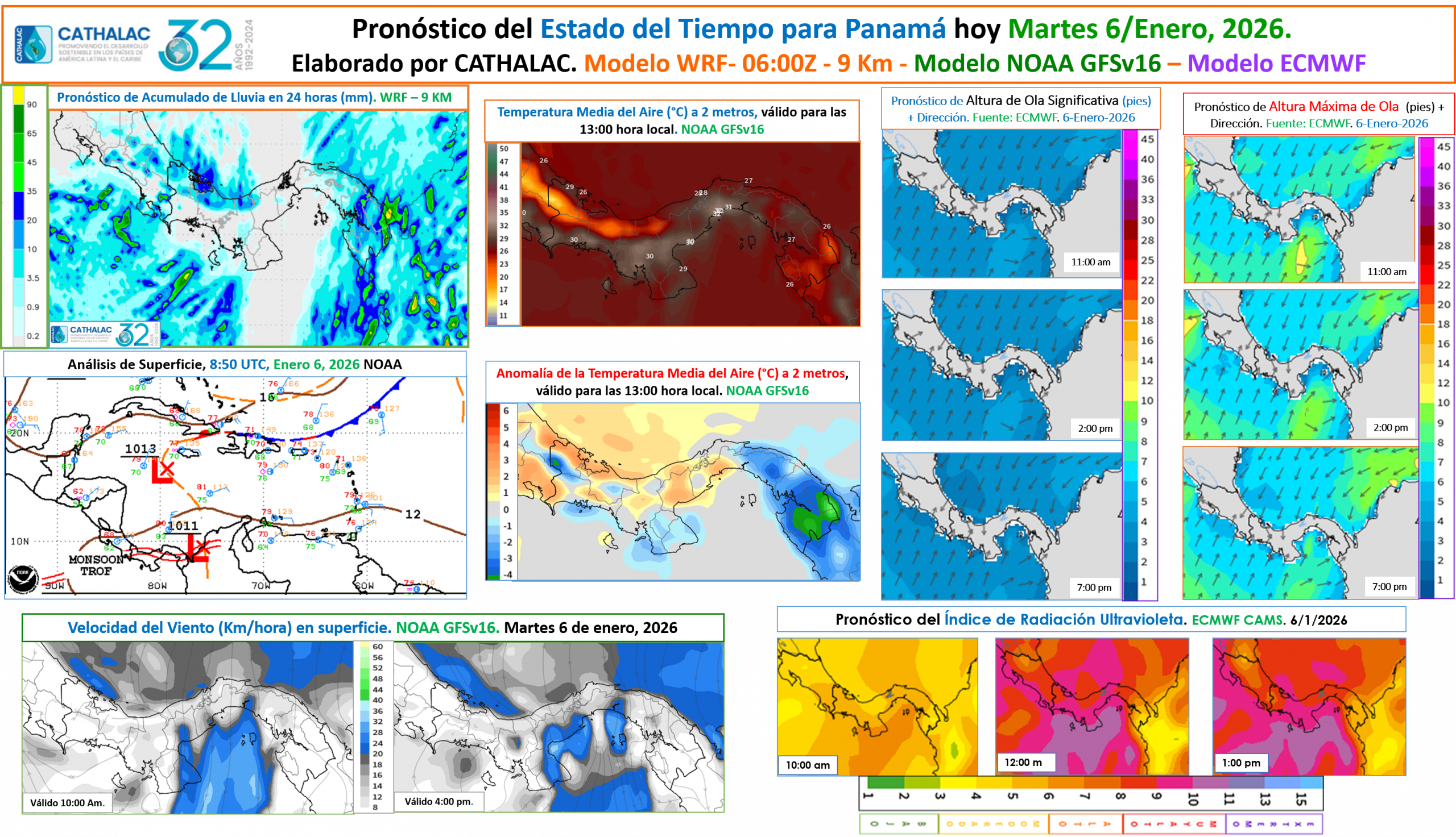 Pronóstico del Estado del Tiempo en 24 horas, válido para Miércoles 7 de Enero 2026