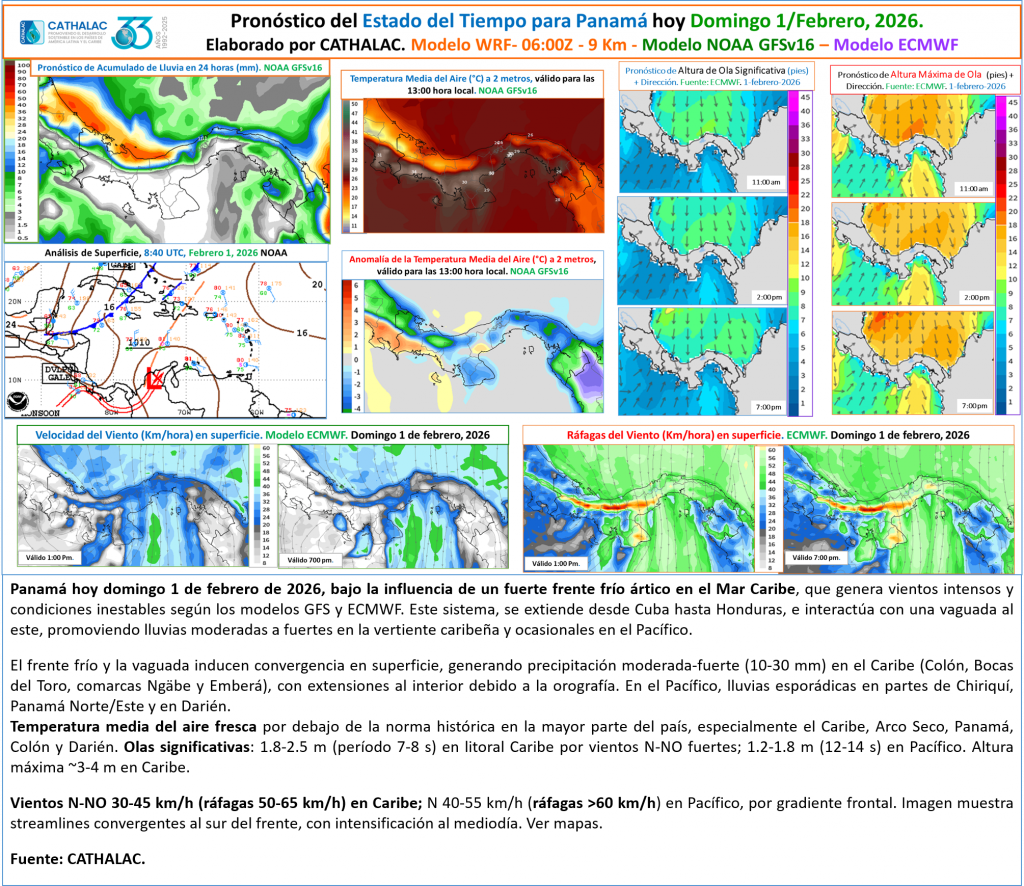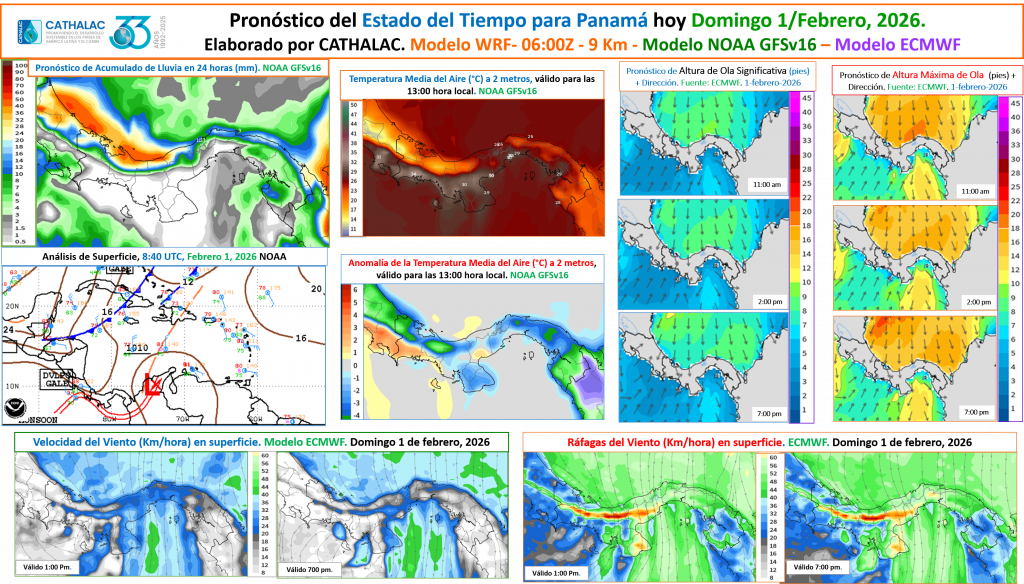 Pronóstico del Estado del Tiempo en 24 horas, válido para Domingo 1 de Febrero 2026